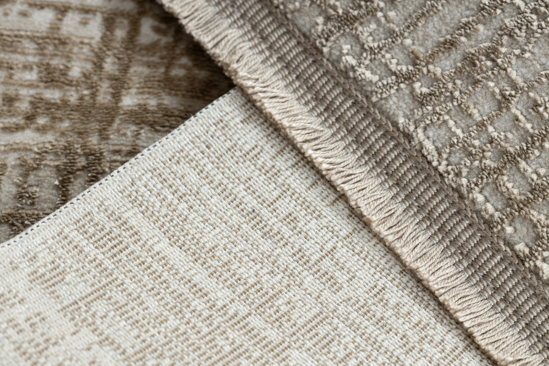 Beżowy dywan z abstrakcyjnym wzorem, który wprowadzi do salonu spokojną elegancję i subtelny charakter.
