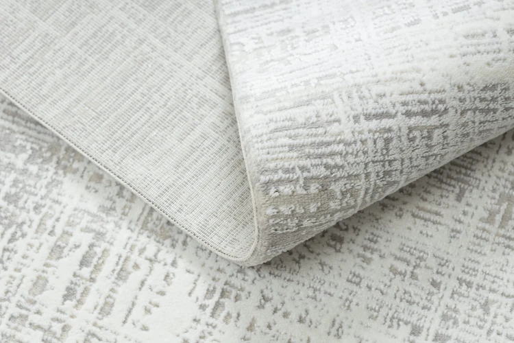 Kremowy dywan z abstrakcyjnym wzorem, który doskonale wpisze się w nowoczesny salon lub pokój.