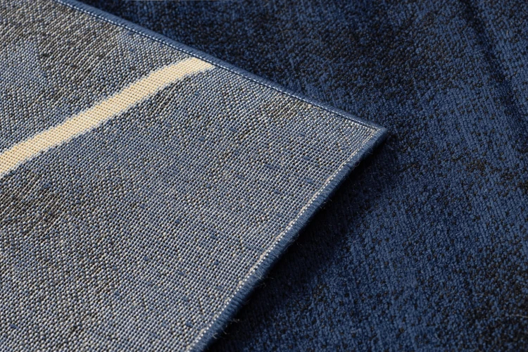 Granatowo-złoty dywan z geometrycznym wzorem, który doda salonowi elegancki charakter i wyrazisty akcent kolorystyczny.