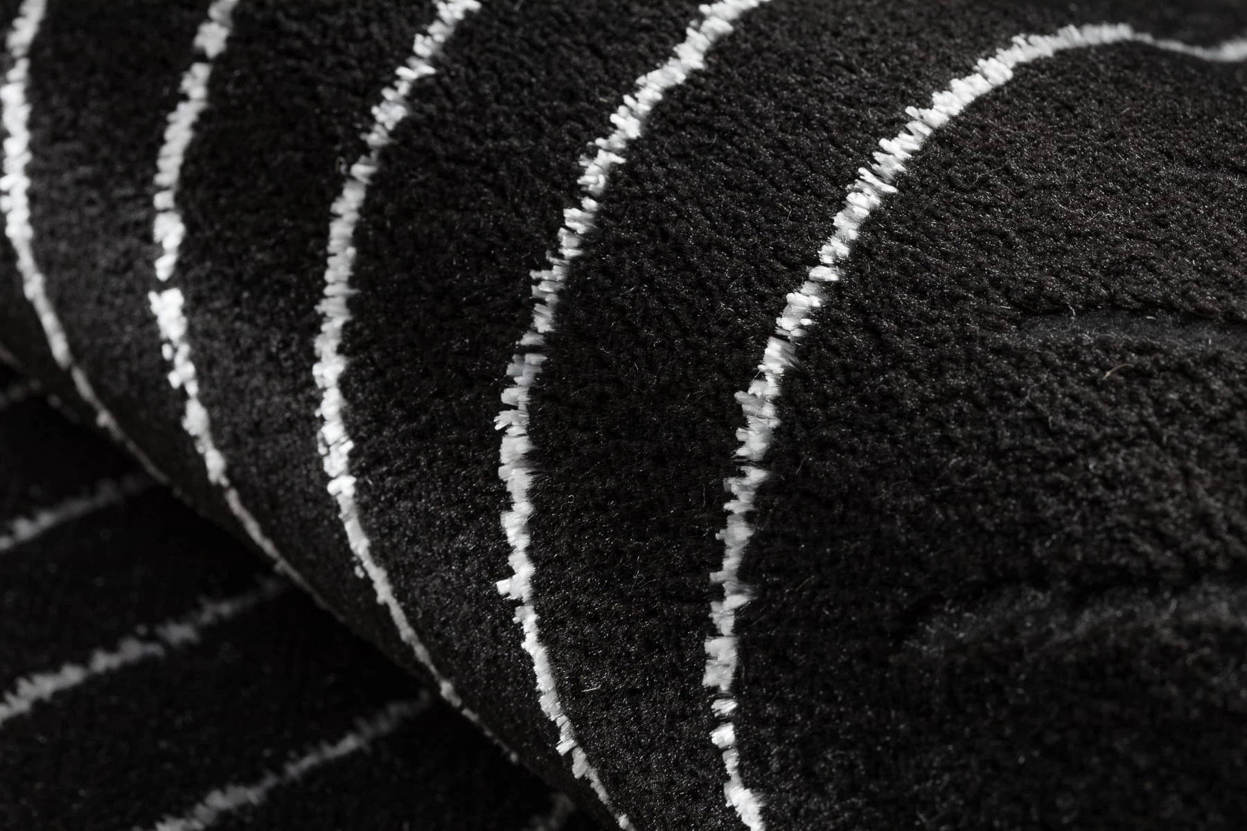 Czarno-srebrny dywan z geometrycznymi liniami, który nada salonowi nowoczesny charakter i stanie się eleganckim centrum przestrzeni.