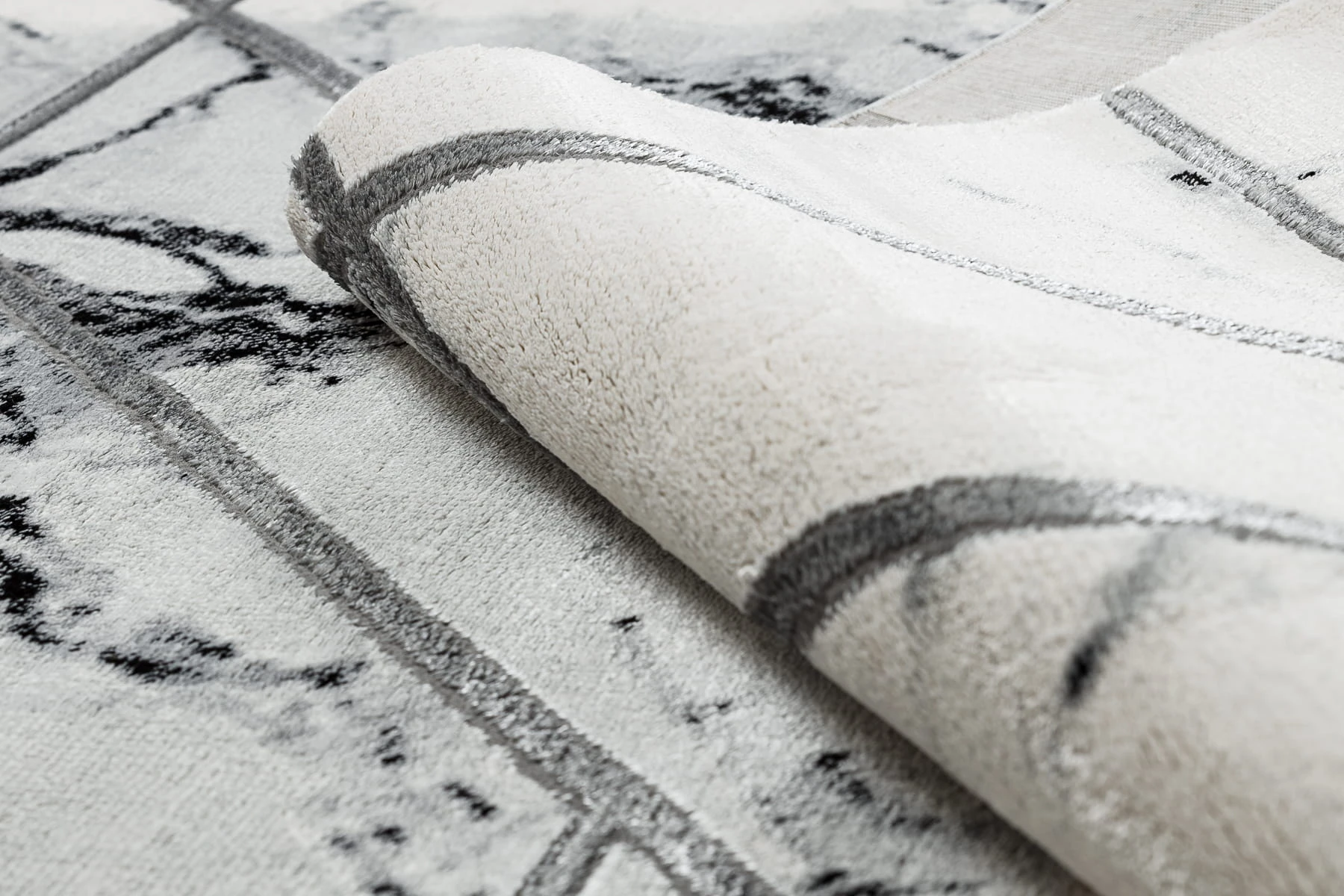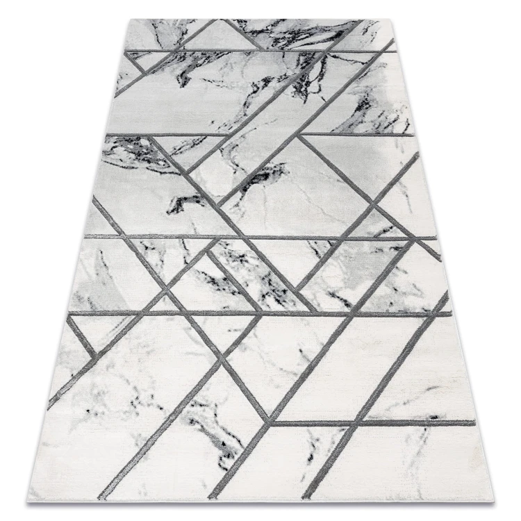 Biało-srebrny dywan z geometrycznym wzorem, który doda wnętrzu nowoczesny charakter i podkreśli stylową aranżację.