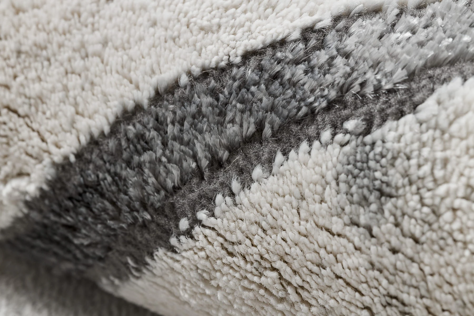 Biało-srebrny dywan z geometrycznym wzorem, który doda wnętrzu nowoczesny charakter i podkreśli stylową aranżację.