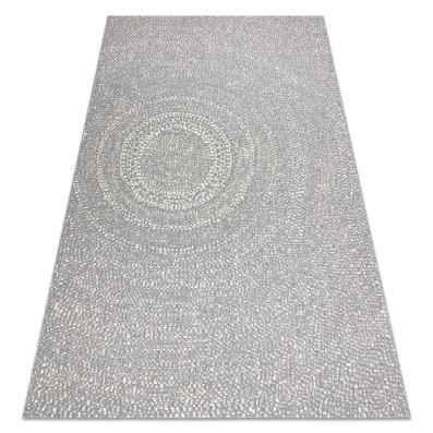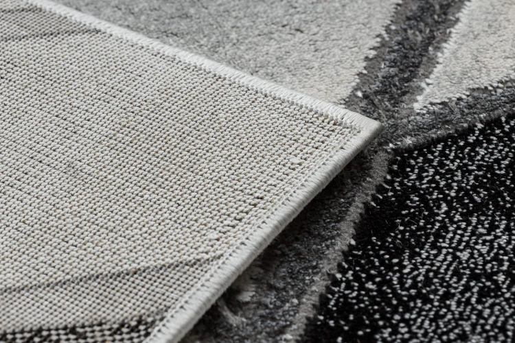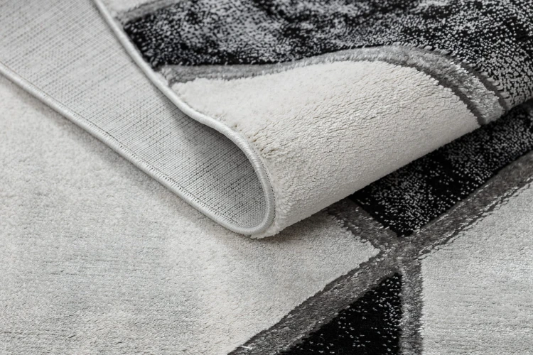 Szary dywan z geometrycznym wzorem marmurkowym, który doda salonowi nowoczesny charakter i elegancki akcent.