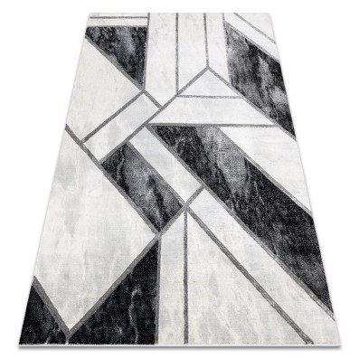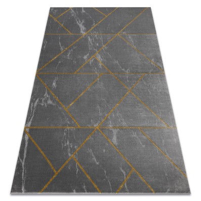 Kremowo-złoty dywan z geometrycznym wzorem, który doda salonowi elegancki charakter w stylu marmurkowym.