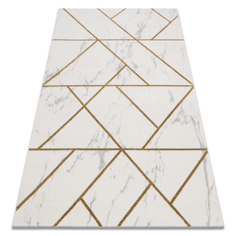 Kremowo-złoty dywan z geometrycznym wzorem, który doda salonowi elegancki charakter w stylu marmurkowym.