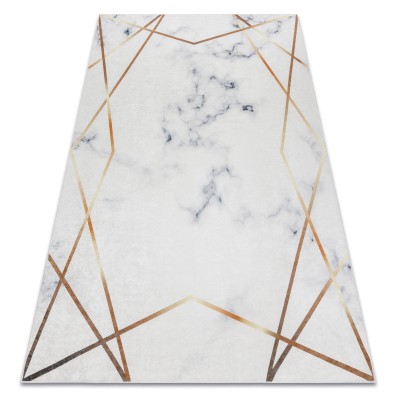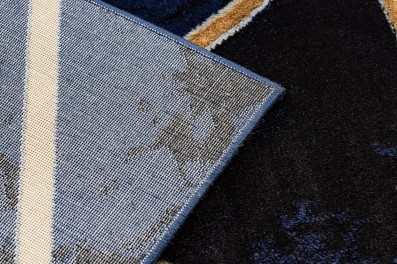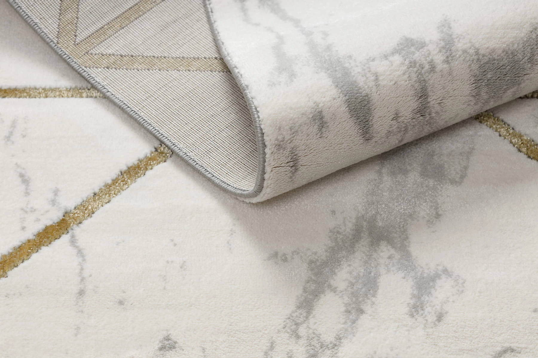 Kremowo-złoty dywan z geometrycznym wzorem, który elegancko wypełni korytarz, dodając mu ciepłego charakteru.
