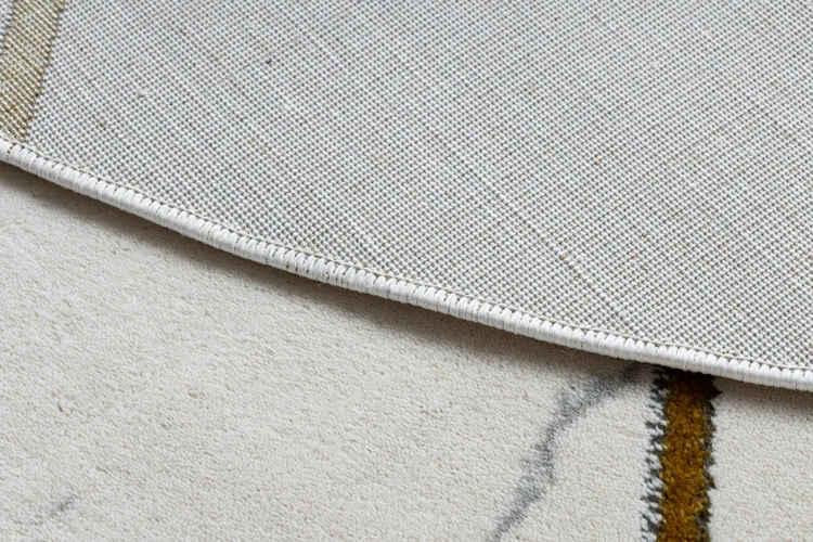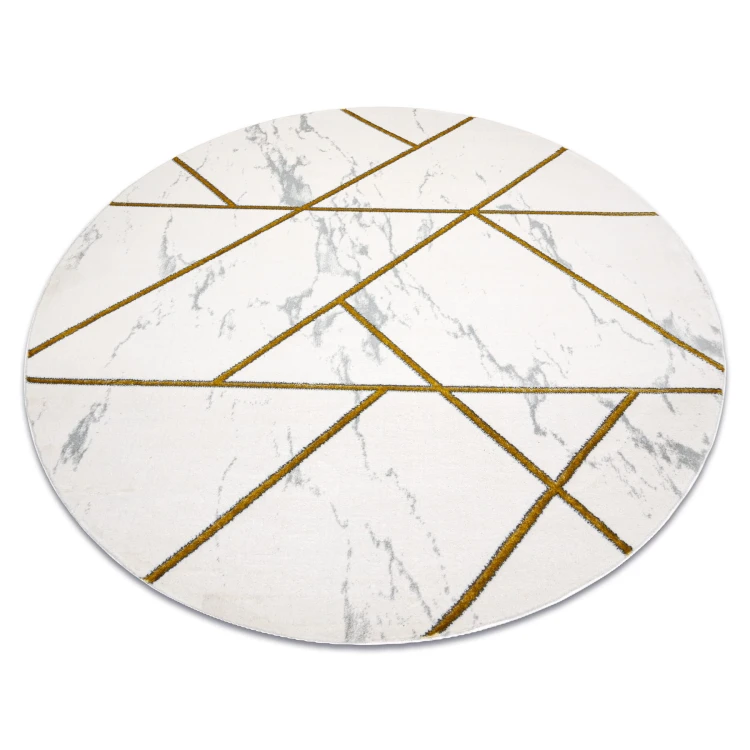 Okrągły kremowo-złoty dywan z geometrycznym wzorem marmurkowym, który doda salonowi elegancki akcent w ciepłych tonach.
