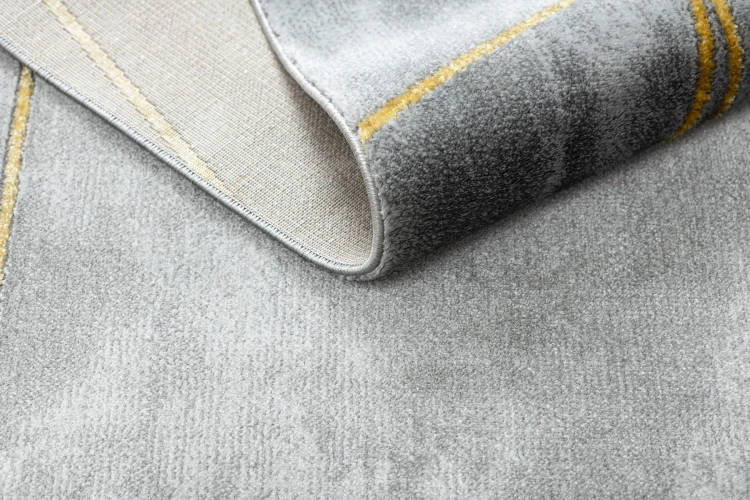 Szaro-złoty dywan z geometrycznym wzorem, który doda salonowi elegancki charakter i ciepły, metaliczny blask.