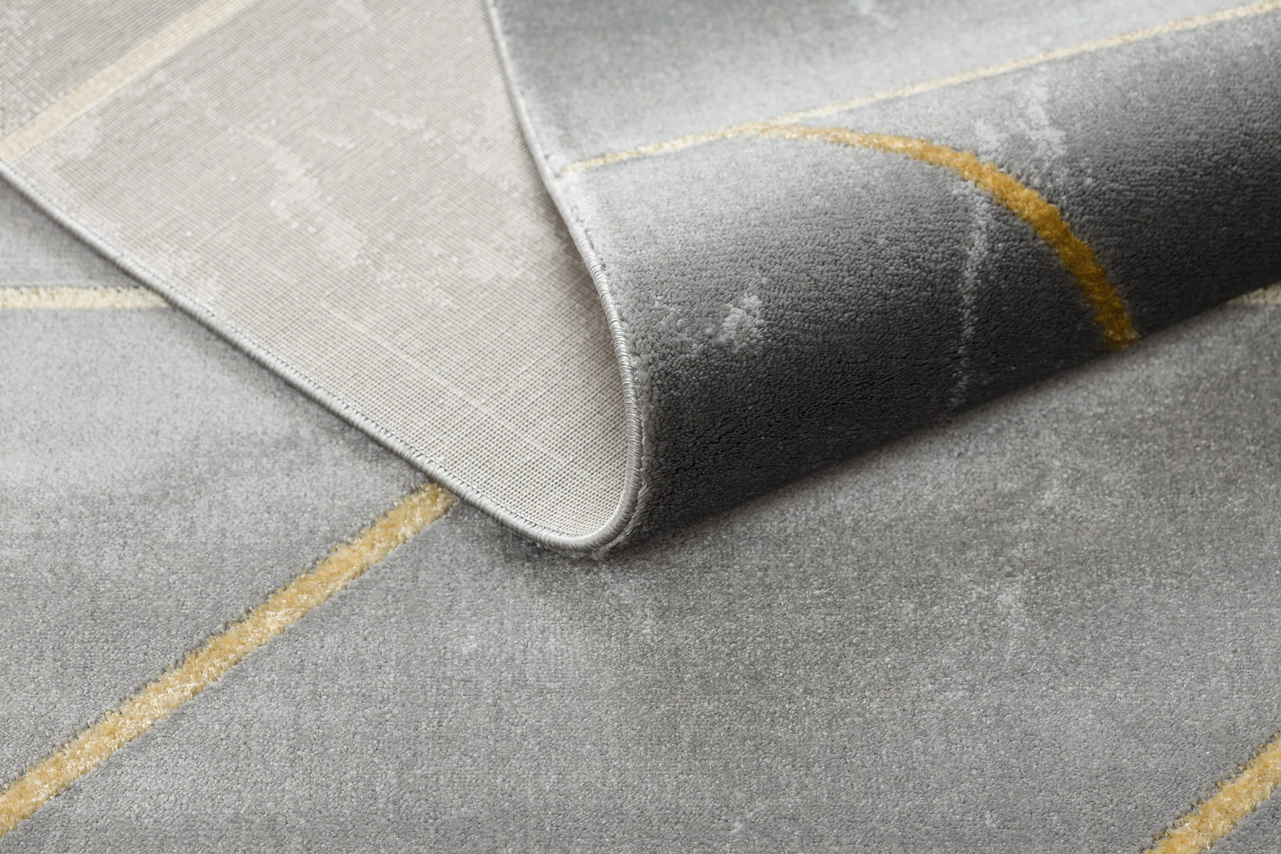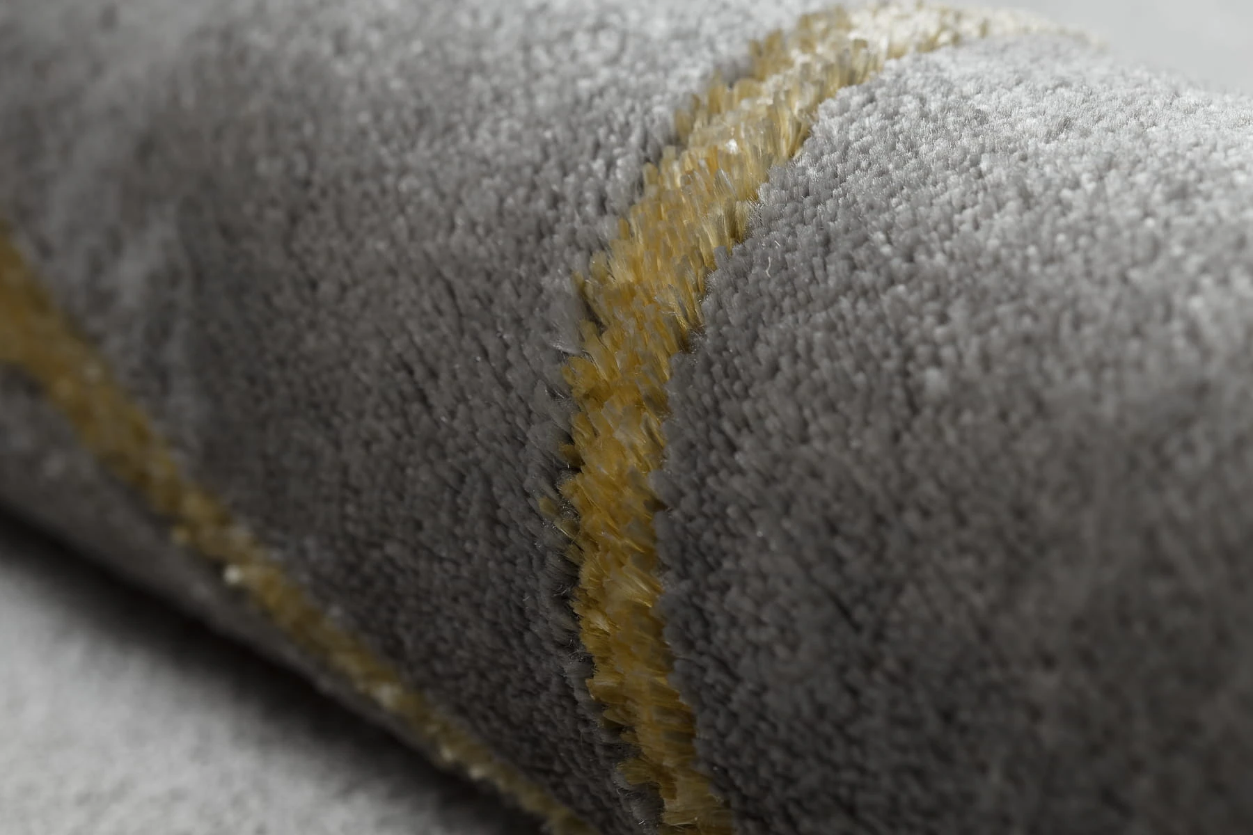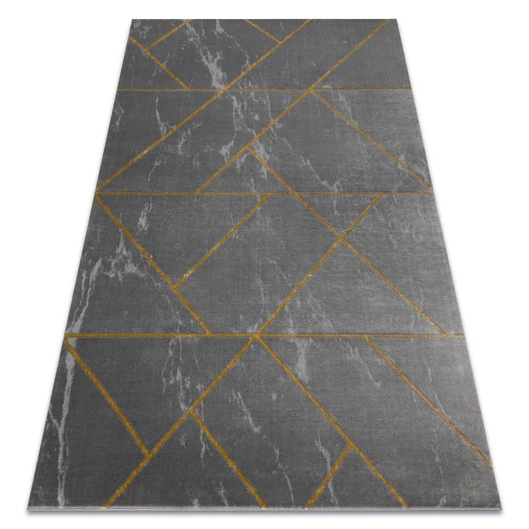 Szaro-złoty dywan z geometrycznym wzorem, który doda salonowi elegancki charakter i nowoczesny styl.