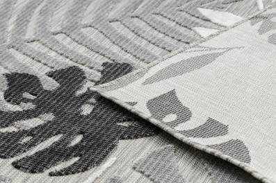 Srebrny dywan z roślinnym wzorem, który doda wnętrzu elegancji i naturalnego charakteru.