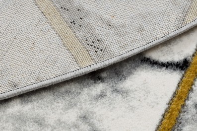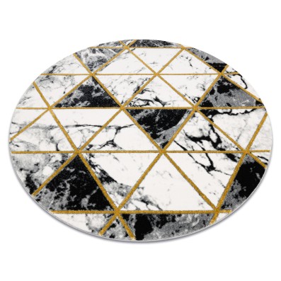 Okrągły dywan w odcieniach złota z geometrycznym wzorem, który doda wnętrzu elegancki charakter i stanie się centralnym punktem salonu.