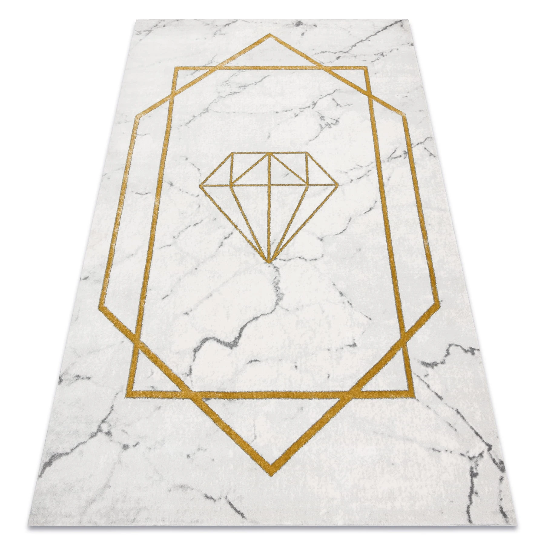 Kremowy dywan z abstrakcyjnym wzorem w złocistych odcieniach, który doskonale ozdobi korytarz, nadając mu elegancki charakter.