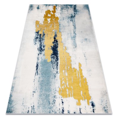 Granatowy dywan z abstrakcyjnym wzorem i złotymi akcentami, który nada wnętrzu elegancki i nowoczesny charakter.