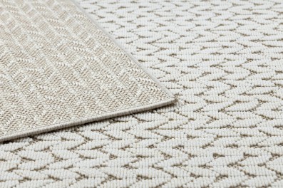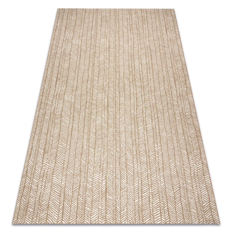 Sznurkowy dywan w beżową jodełkę, odporny na warunki atmosferyczne, idealny na taras i balkon.