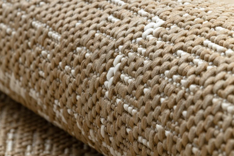 Sznurkowy dywan w beżową kratkę na Twoim tarasie