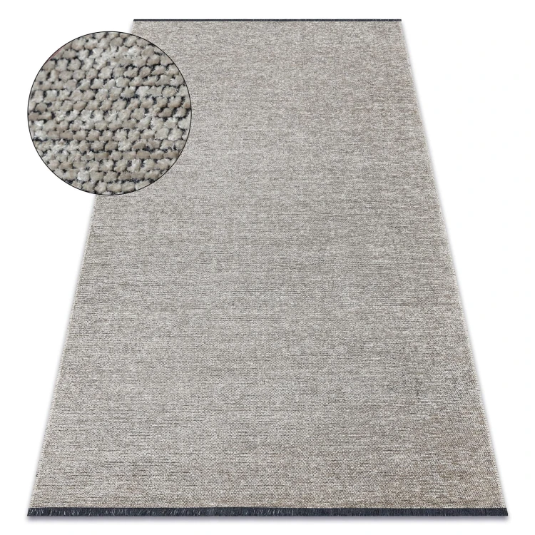 Jednokolorowy beżowy dywan z krótkim runem, który doskonale sprawdzi się w salonie, tworząc spokojną bazę dla całego wnętrza.