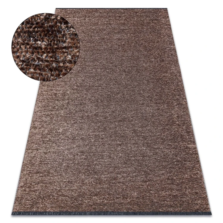 Jednokolorowy brązowy dywan z krótkim runem, który nada korytarzowi ciepły charakter i przytulną atmosferę.