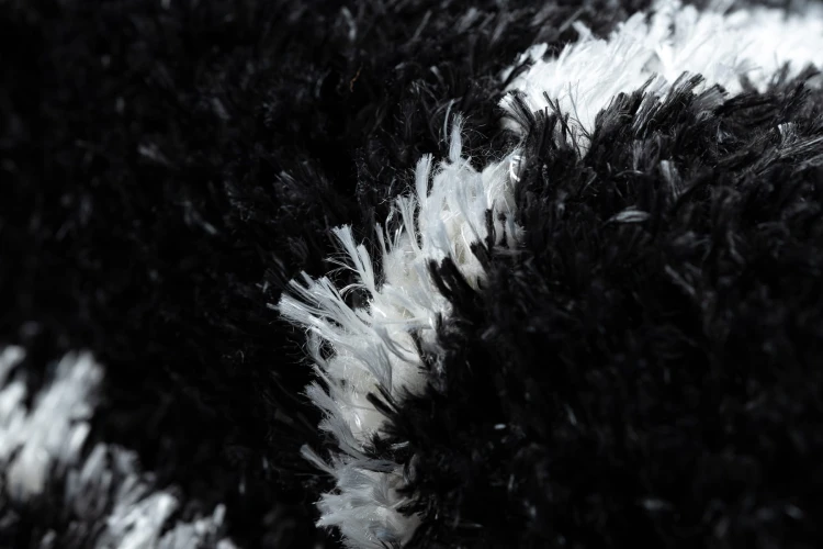 Antracytowy dywan shaggy z runem 50 mm w klasyczną kratkę, który doda salonowi elegancki charakter i przytulną atmosferę.