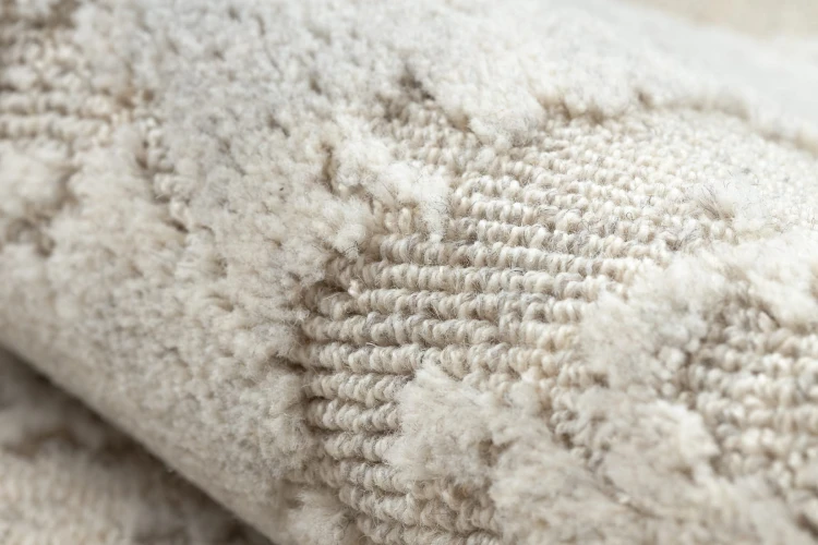 Odkurzaj dywan raz w tygodniu. Świeżą plamę zetrzyj w ciągu 15 minut — delikatnie od krawędzi do środka, nie szorując. Używaj chłodnej wody i łagodnego detergentu do wełny. Nigdy nie używaj gorącej wody oraz środków z tlenem aktywnym. Raz w roku oddaj do profesjonalnej pralni.