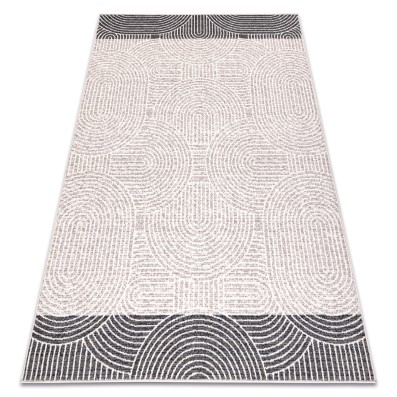 Szaro-beżowy dywan z wełny z geometrycznym wzorem, który doda salonowi elegancki charakter w stylu nowoczesnym.