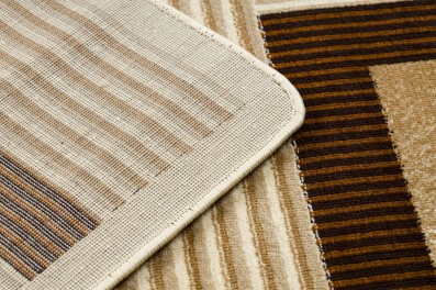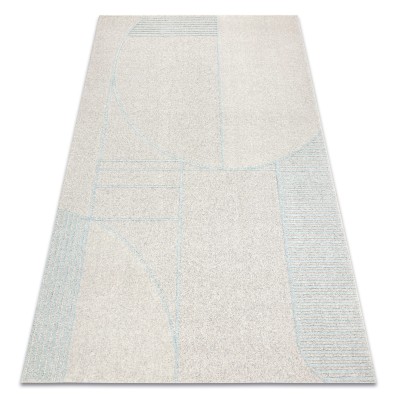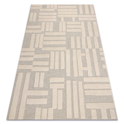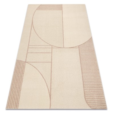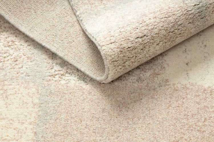 Kremowy dywan z geometrycznym wzorem w różowych akcentach, który nada wnętrzu nowoczesny charakter i subtelne ożywienie.