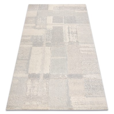 Kremowo-szary dywan z geometrycznym wzorem, który wprowadzi do salonu nowoczesny charakter i stonowaną elegancję.