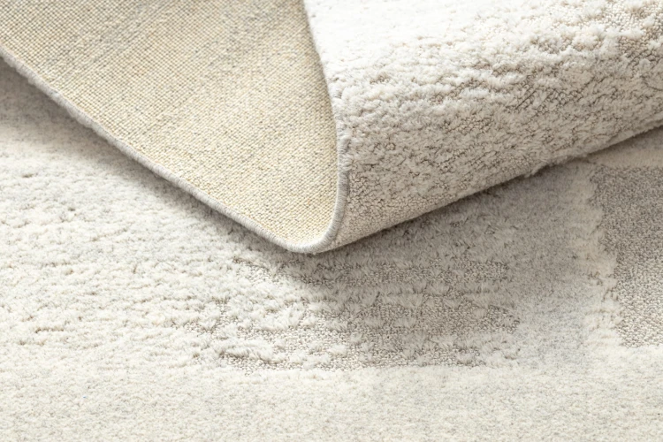 Kremowo-szary dywan z geometrycznym wzorem, który wprowadzi do salonu nowoczesny charakter i stonowaną elegancję.
