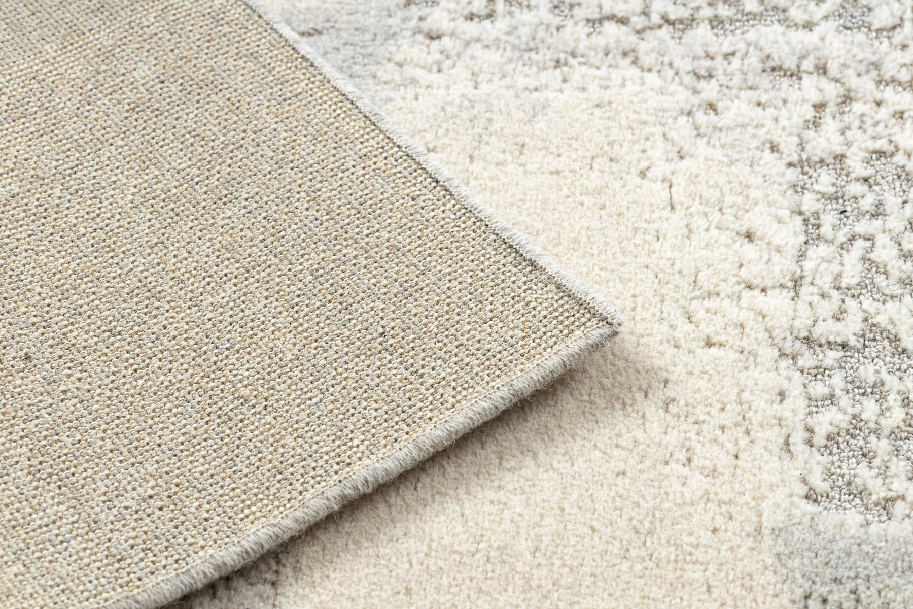Kremowo-szary dywan z geometrycznym wzorem, który wprowadzi do salonu nowoczesny charakter i stonowaną elegancję.