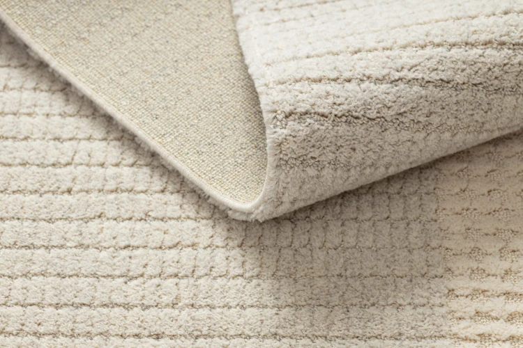 Odkurzaj dywan raz w tygodniu. Świeżą plamę zetrzyj w ciągu 15 minut — delikatnie od krawędzi do środka, nie szorując. Używaj chłodnej wody i łagodnego detergentu do wełny. Nigdy nie używaj gorącej wody oraz środków z tlenem aktywnym. Raz w roku oddaj do profesjonalnej pralni.