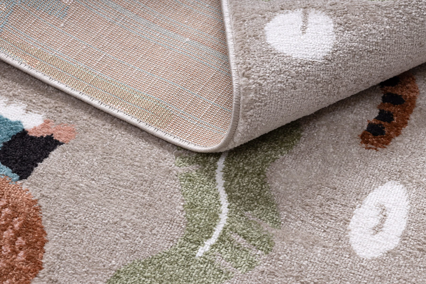 Beżowy dywan z afrykańskim motywem, który ożywi pokój dziecka i zachęci do odkrywczych zabaw.