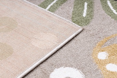 Kremowy dywan z motywem dinozaura, który ożywi pokój dziecka i zachęci do zabawy w prehistoryczny świat.
