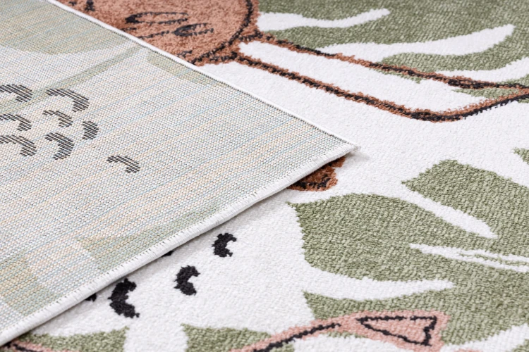 Kremowy dywan z motywem flamingów, który doda pokojowi dziecka egzotyczny akcent i zachęci do zabawy.
