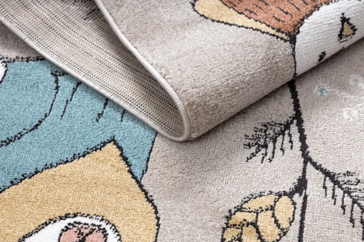 Beżowy dywan o neutralnym charakterze, który subtelnie ożywi pokój dziecka i stworzy przytulną przestrzeń do zabawy.