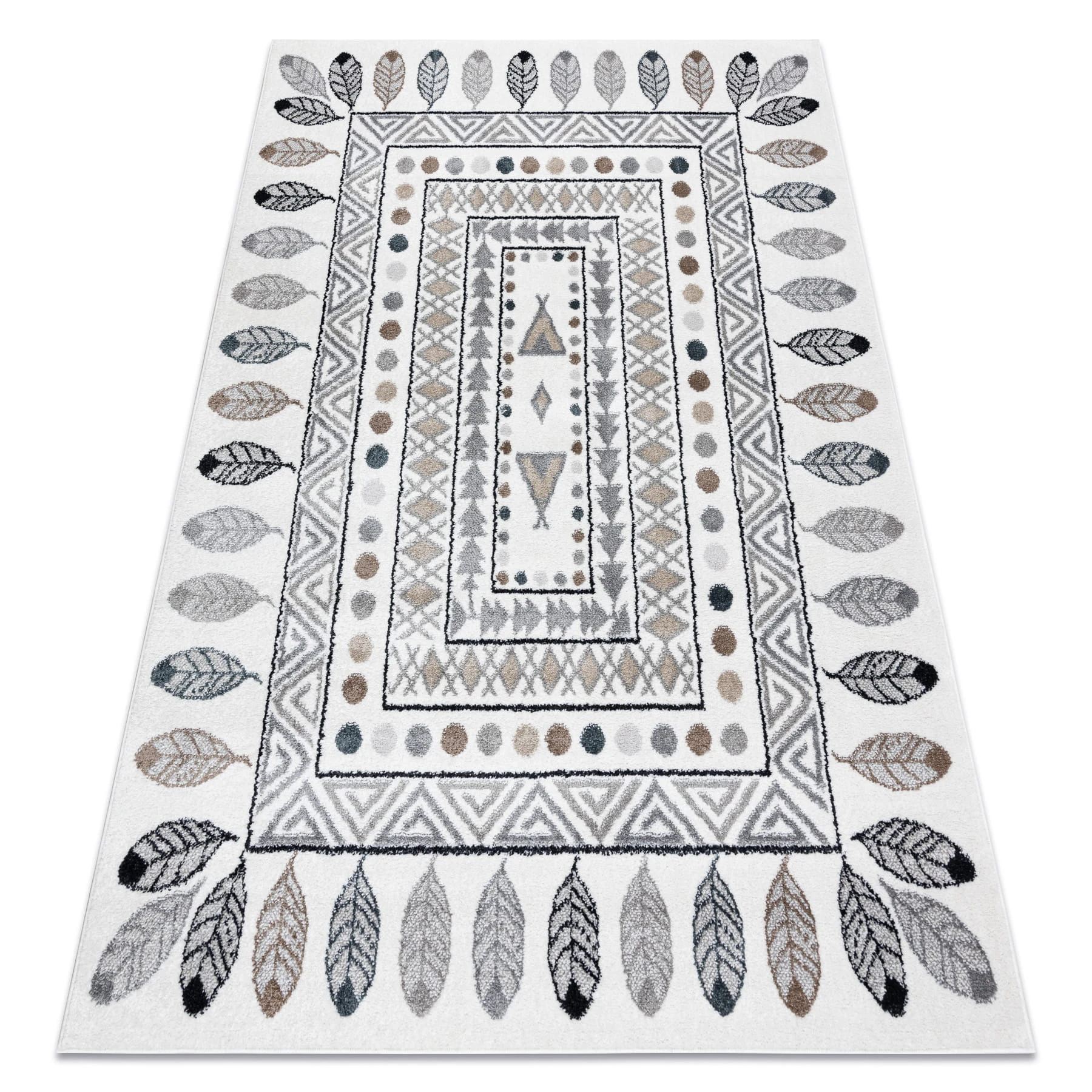 Kremowy dywan z motywem tipi, który stworzy w pokoju dziecka przygodną atmosferę i zachęci do zabawy.