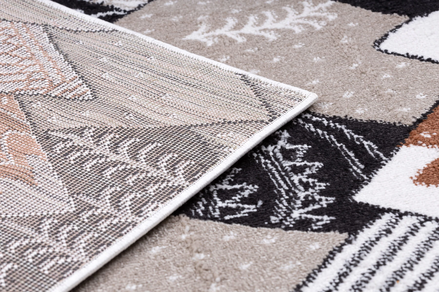 Kremowy dywan z motywem górskim, który stworzy w pokoju dziecka spokojną atmosferę i zachęci do zabawy.