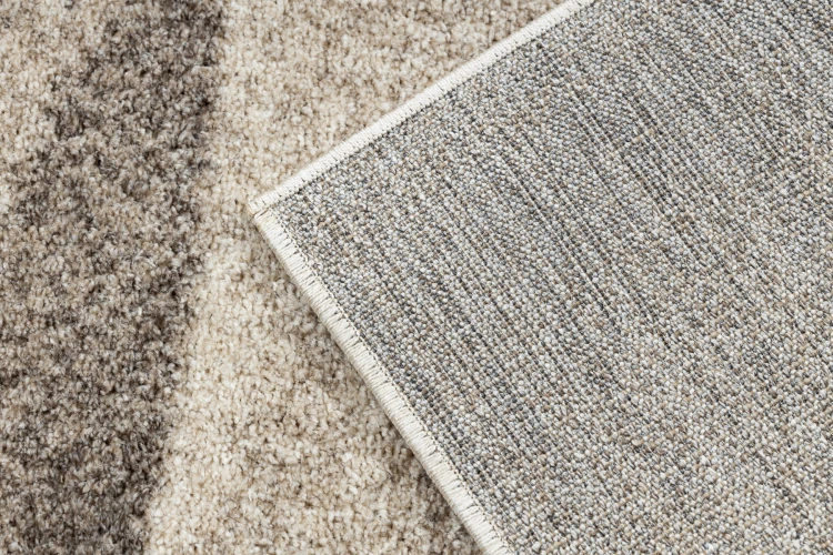 Beżowo-kremowy dywan z abstrakcyjnym wzorem, który doskonale wpisze się w nowoczesny salon lub pokój.