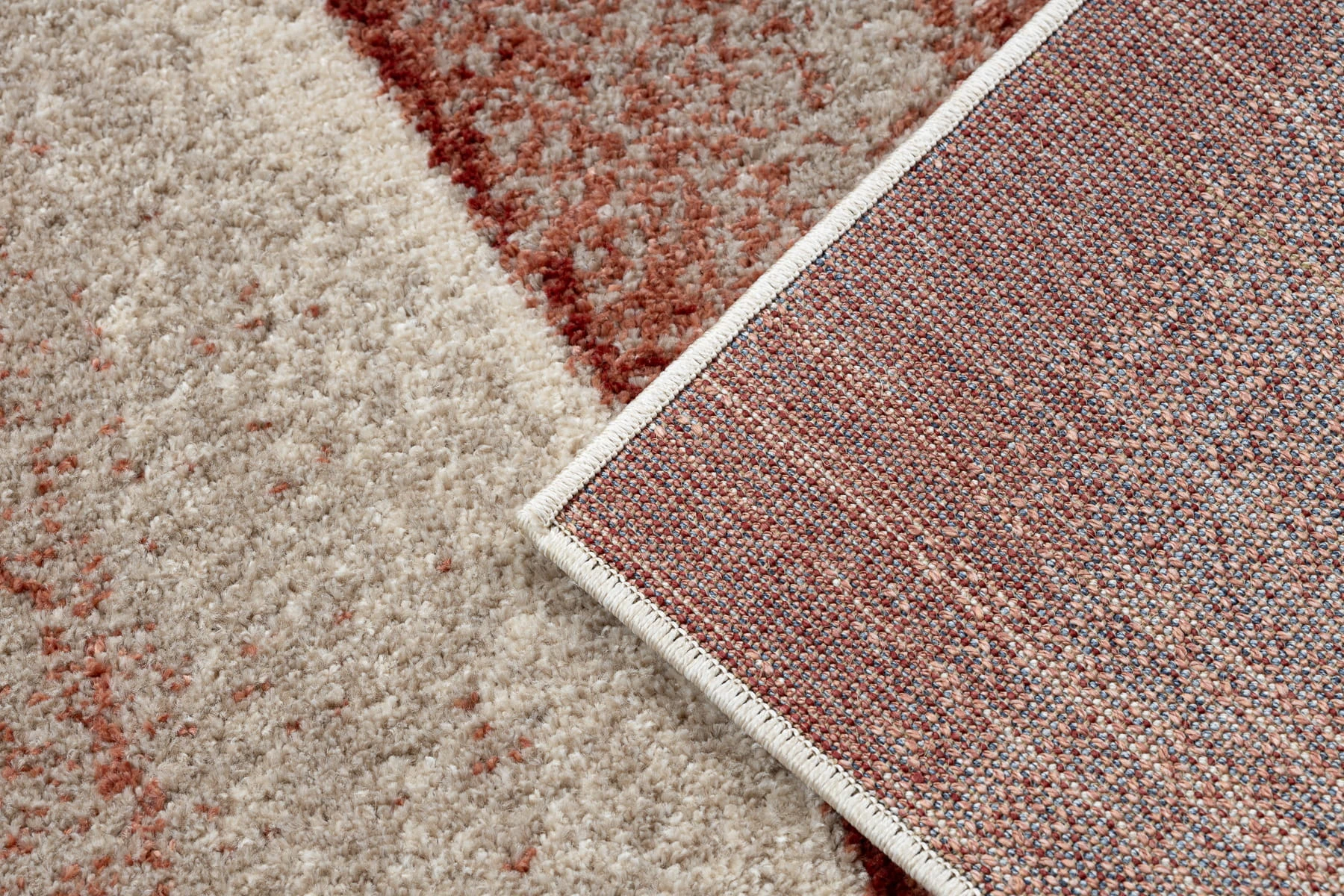 Terakotowy dywan z abstrakcyjnym wzorem fal, który wniesie do salonu ciepły, energetyczny akcent.