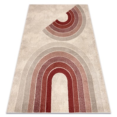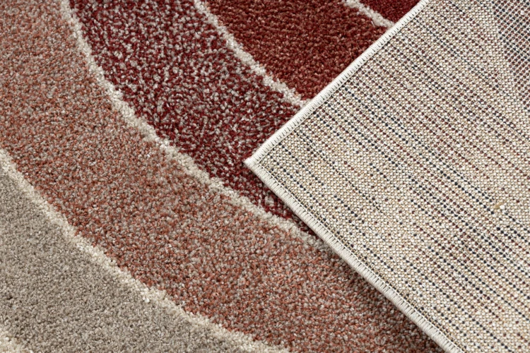 Kremowo-bordowy dywan z geometrycznym wzorem, który doda salonowi elegancki charakter w ciepłych odcieniach.