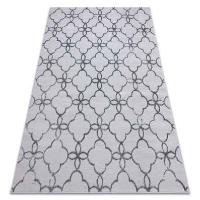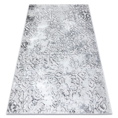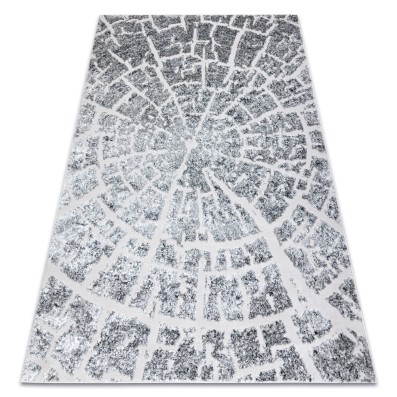 Szary dywan z abstrakcyjnym wzorem, który doskonale wpisze się w nowoczesne wnętrze salonu lub pokoju.