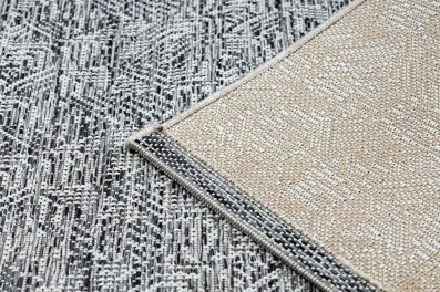 Szary dywan z abstrakcyjnym wzorem marmurkowym, który wprowadzi do salonu elegancki, nowoczesny akcent.
