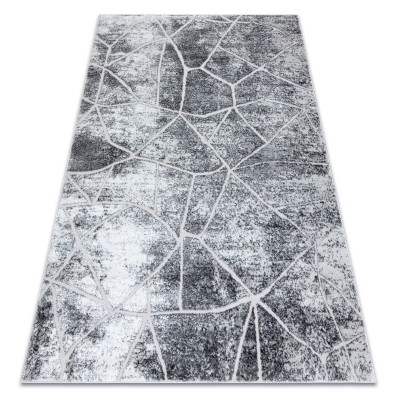 Szary dywan z abstrakcyjnym wzorem marmurkowym, który wprowadzi do salonu elegancki, nowoczesny akcent.