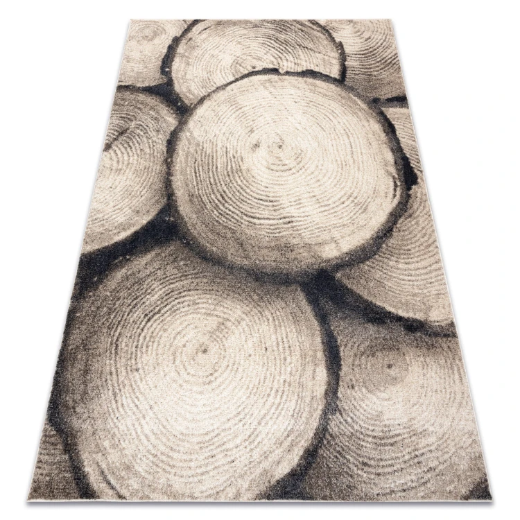 Beżowy dywan z delikatnym roślinnym wzorem, który doskonale sprawdzi się w korytarzu, nadając mu naturalny charakter.
