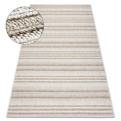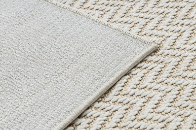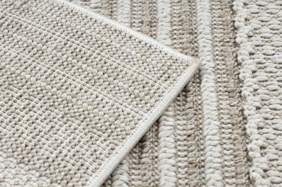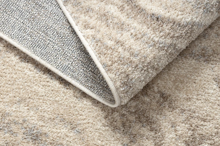 Beżowy dywan z abstrakcyjnym wzorem wydm, który doskonale sprawdzi się w korytarzu, dodając mu ciepłego, naturalnego charakteru.