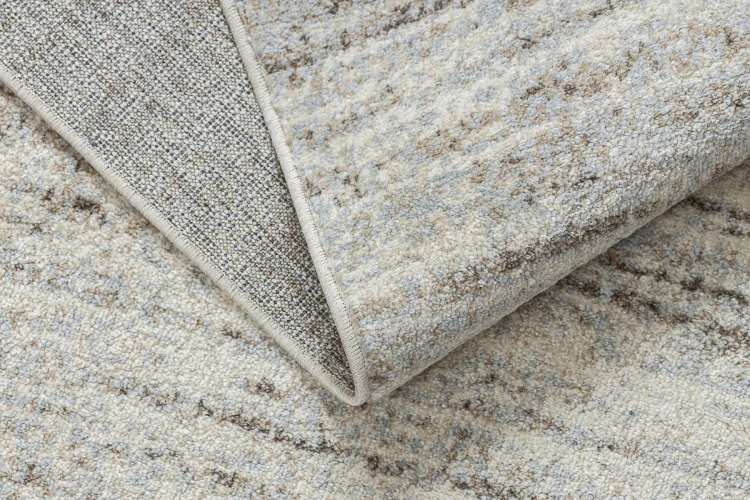 Kremowy dywan z abstrakcyjnym wzorem, który doskonale wpisze się w nowoczesne wnętrze, dodając mu delikatności i stylu.