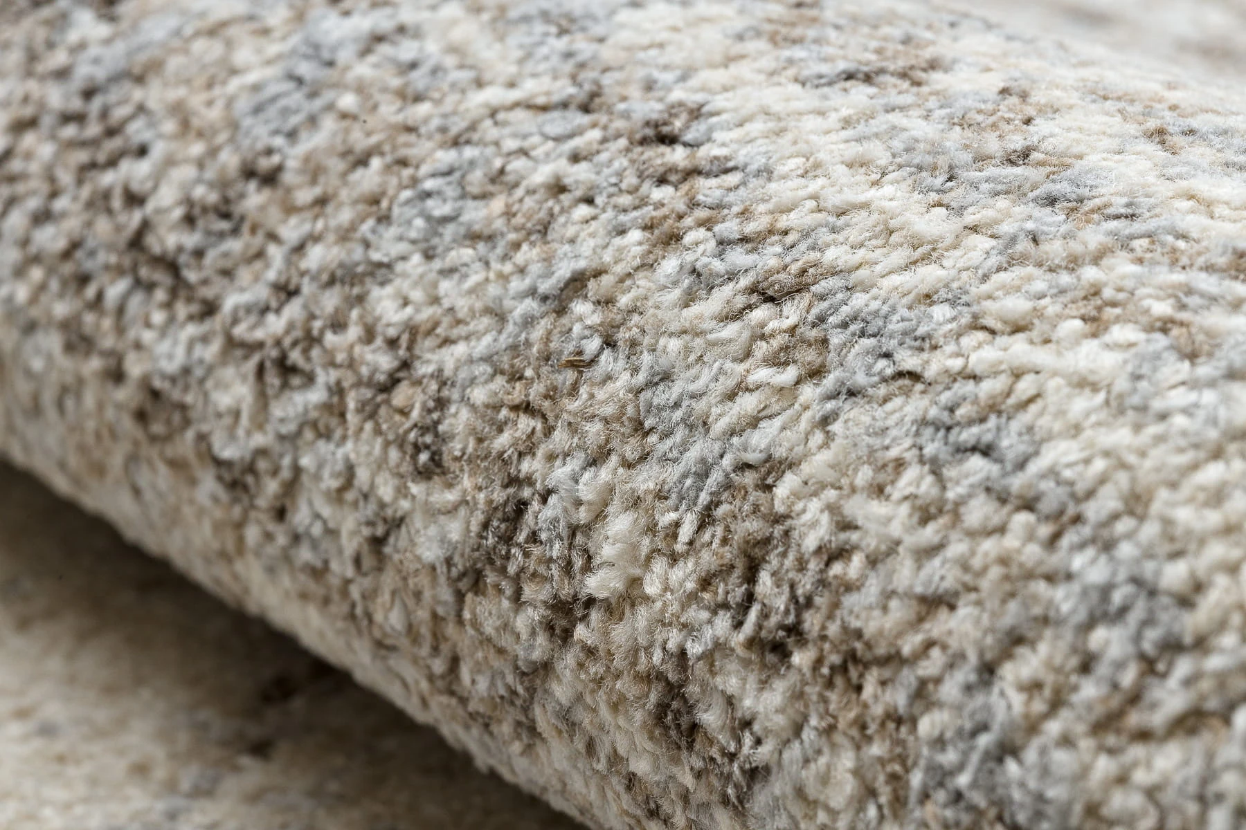 Kremowy dywan z abstrakcyjnym wzorem, który doskonale wpisze się w nowoczesne wnętrze, dodając mu delikatności i stylu.