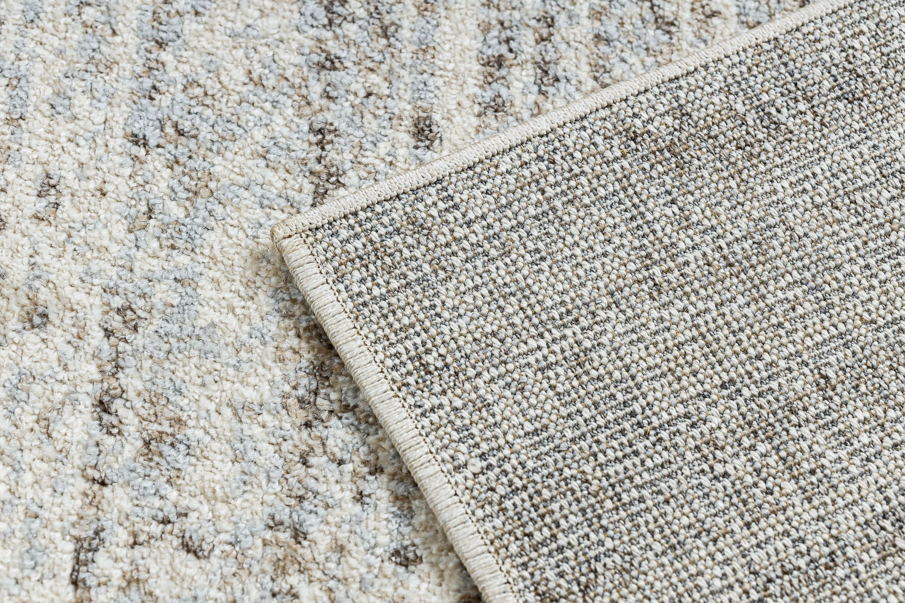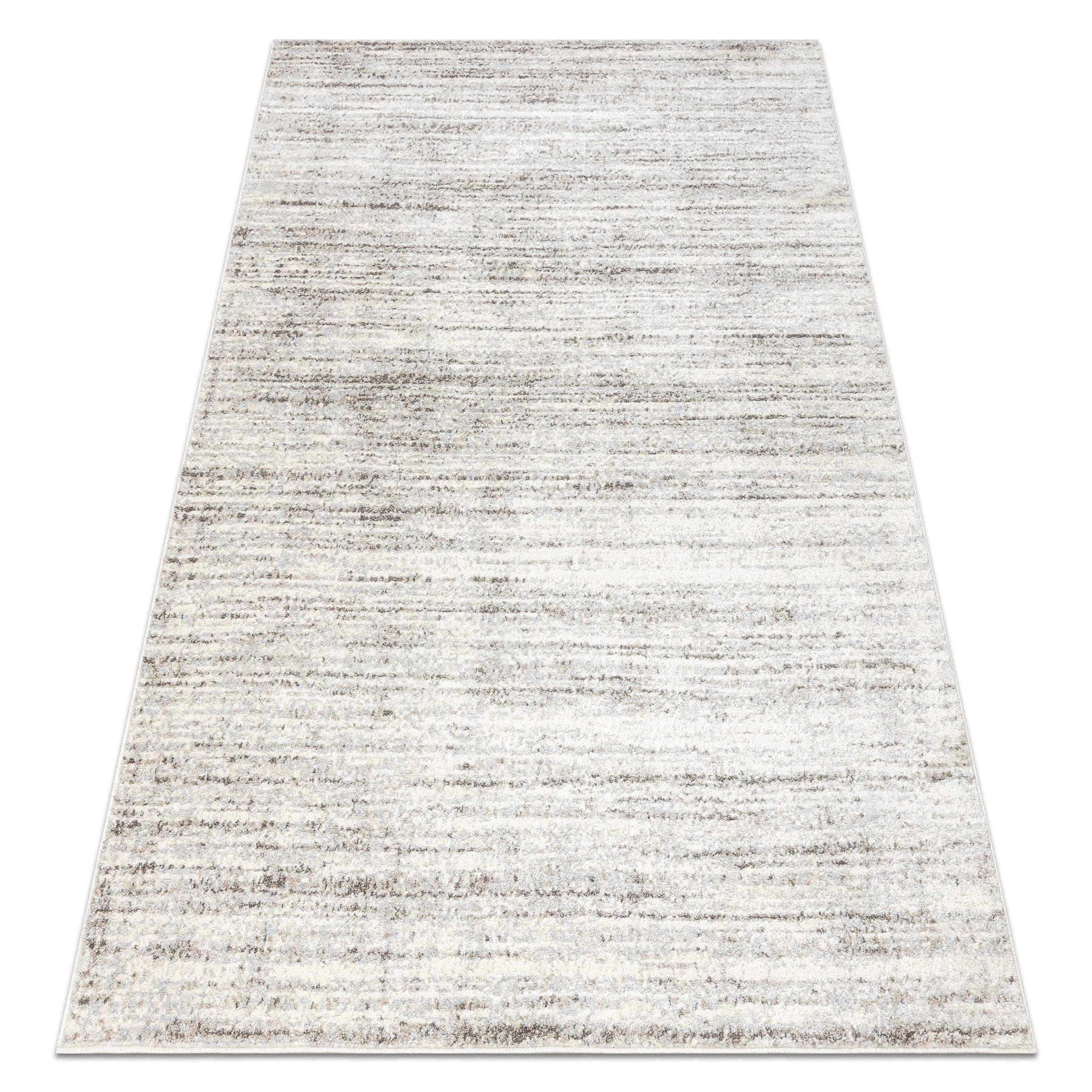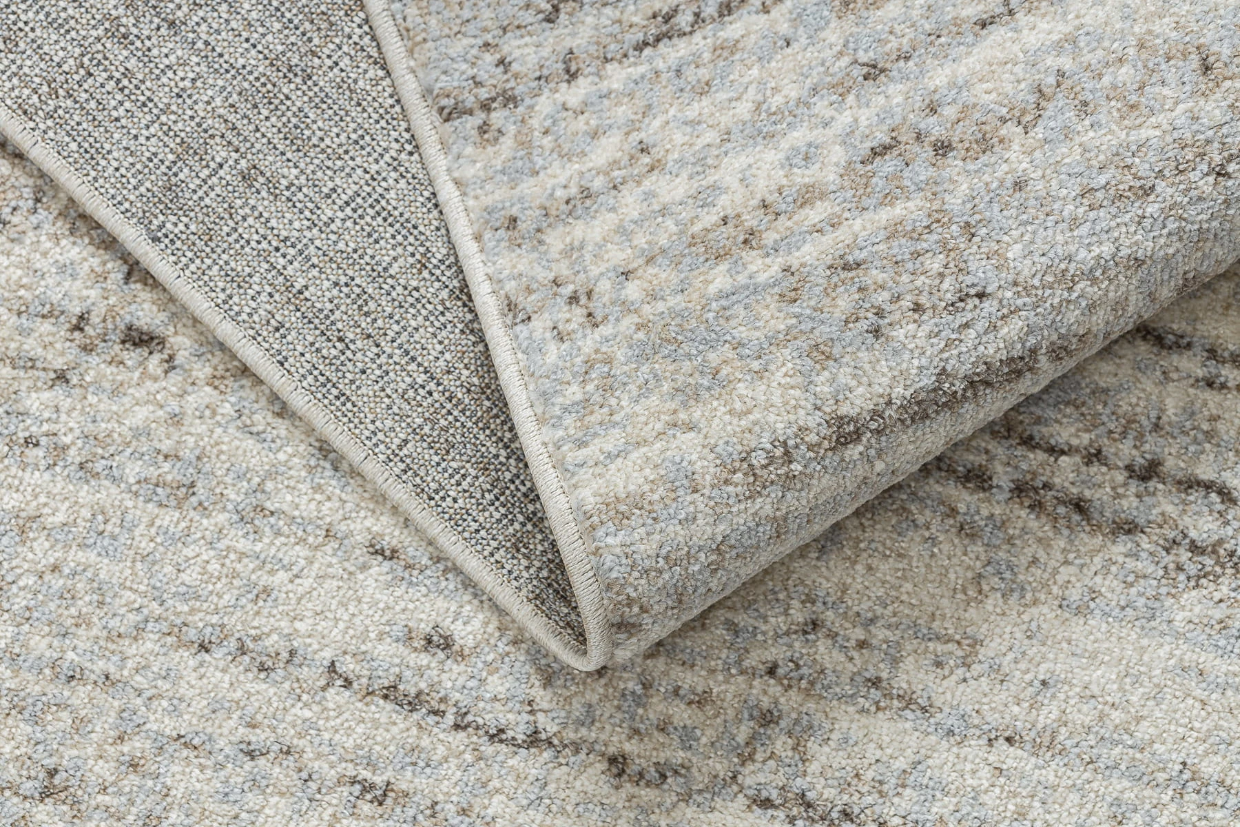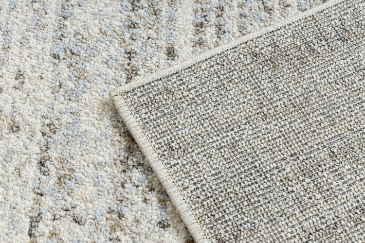 Kremowy dywan z abstrakcyjnym wzorem, który doskonale wypełni korytarz, wprowadzając subtelny akcent w stonowanym stylu.