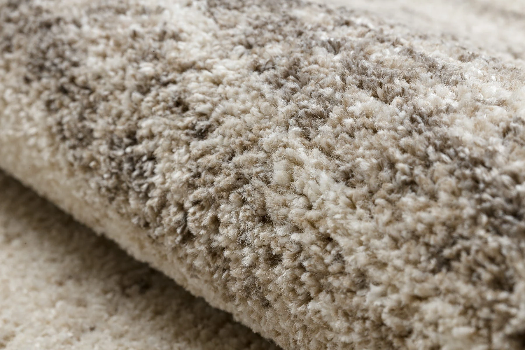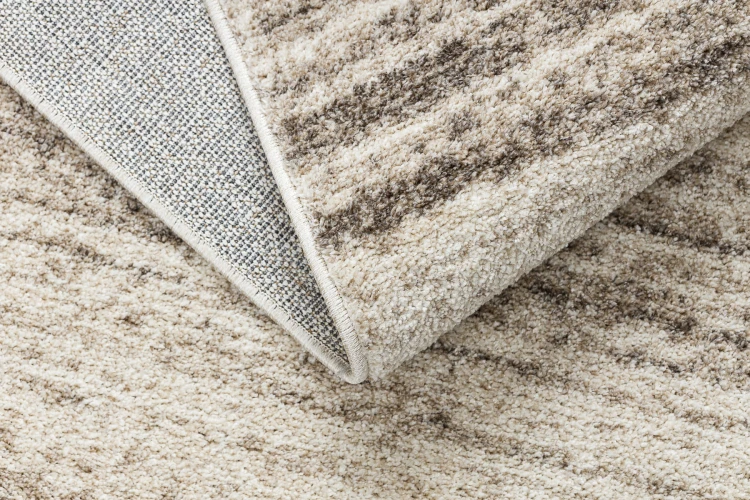 Kremowo-beżowy dywan z abstrakcyjnym wzorem, który wprowadzi do salonu ciepłą, stonowaną elegancję.