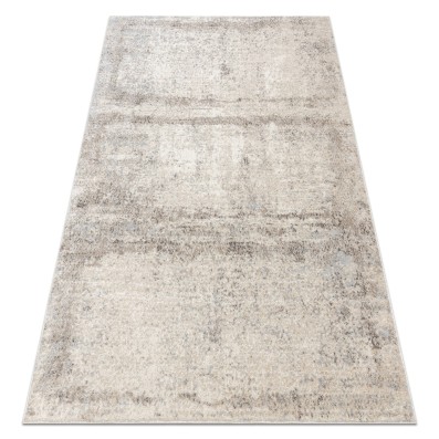 Beżowy dywan z abstrakcyjnym wzorem, który doskonale wpisze się w nowoczesny salon, dodając wnętrzu artystycznego charakteru.