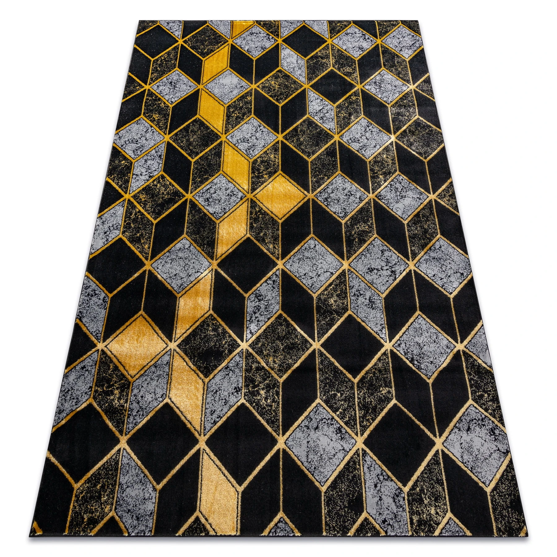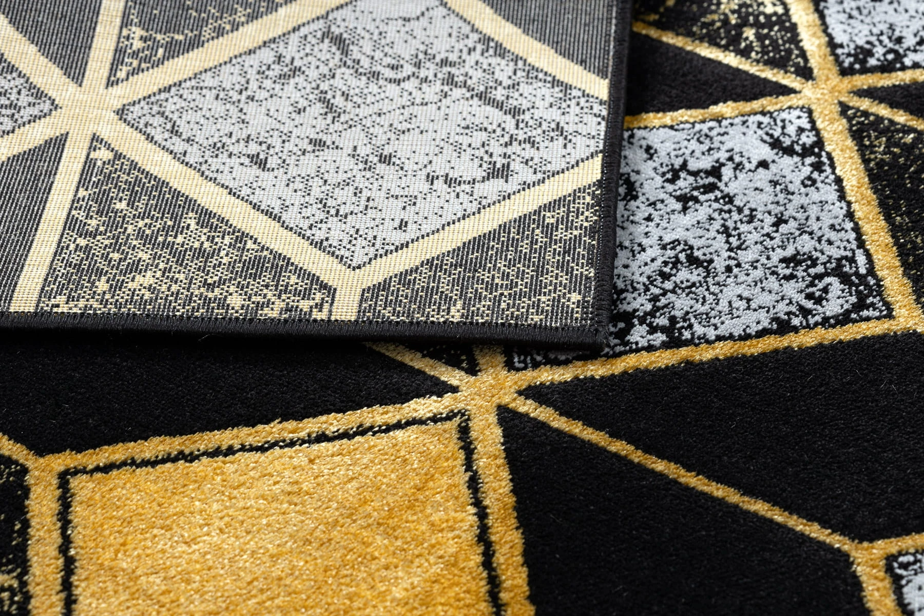 Czarno-złoty dywan z geometrycznym wzorem, który doda korytarzowi elegancki charakter i ożywi przejścia ciepłym akcentem.