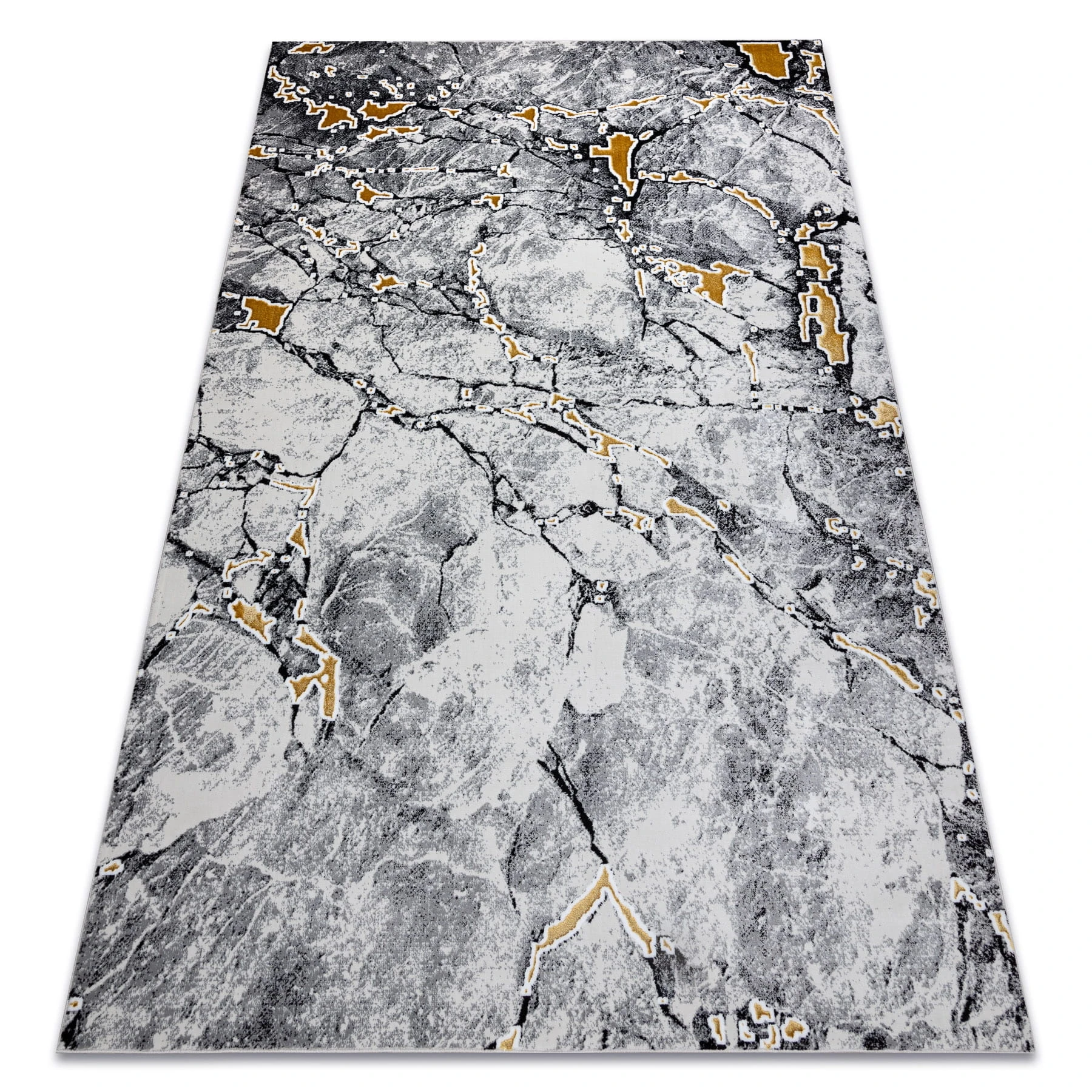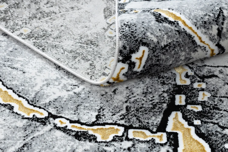 Szary dywan z abstrakcyjnym wzorem marmuru, który doda salonowi nowoczesnej elegancji i stonowanego charakteru.